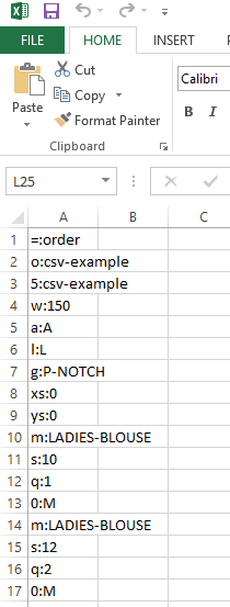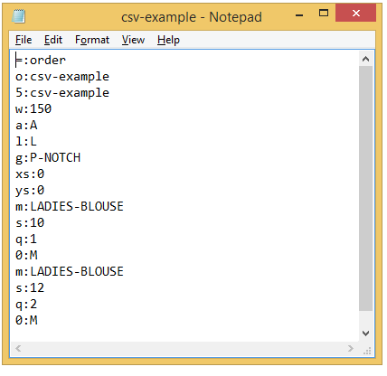 Here is a sample as viewed via Notepad and Excel: