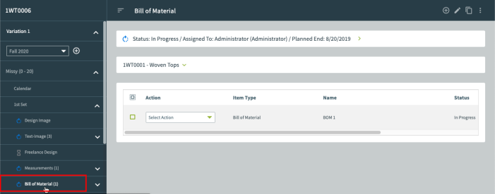 The Style Folder Bill of Material workflow allows users to setup a BOM with Dimensions and pitch materials with Colorway options.