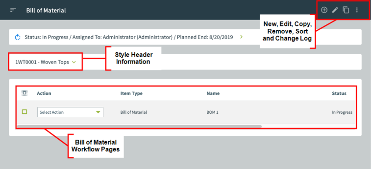 Change Log: Lists all additions and modifications within the Styles Bill of Material page.