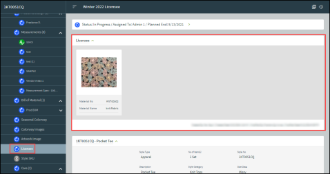 The Style Folder’s Licensee workflow page provides a quick reference of all licensed artwork items listed in the BOM pages.