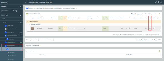 Licensed images can be generated from the Bill of Material page. Items assigned to the LIC (Licensed) qualifier column on the BOM page will be shown on the Licensee workflow page. This helps to reference an artwork as it is being developed.