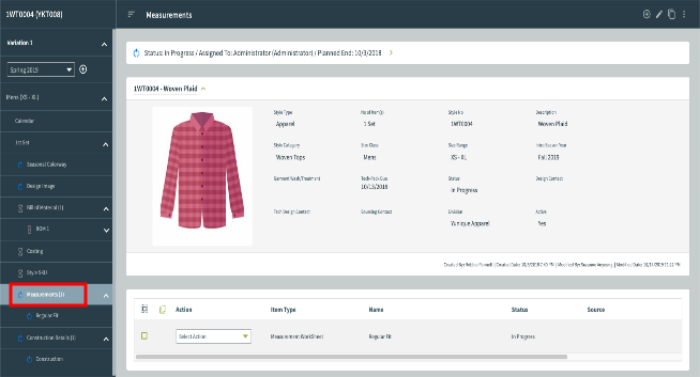 The Style Measurements multi-workflow page contains the Style’s initial sample size measurements for each POM (point of measurement).