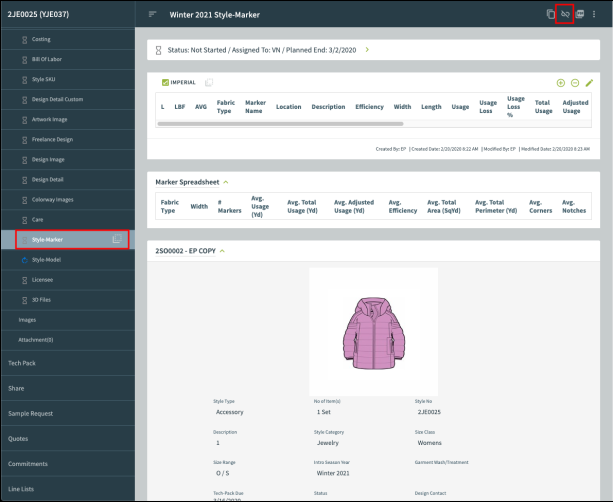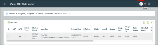 Another way to add a marker is to copy one associated to another style within YuniquePLM. Click the copy button to open its window.