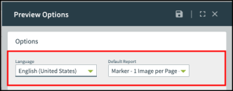 Note: Users may also select Preview Options located at the bottom of the list. This functionality allows the user to select a preferred language and default report. Keep in mind, these settings are specific to this workflow.