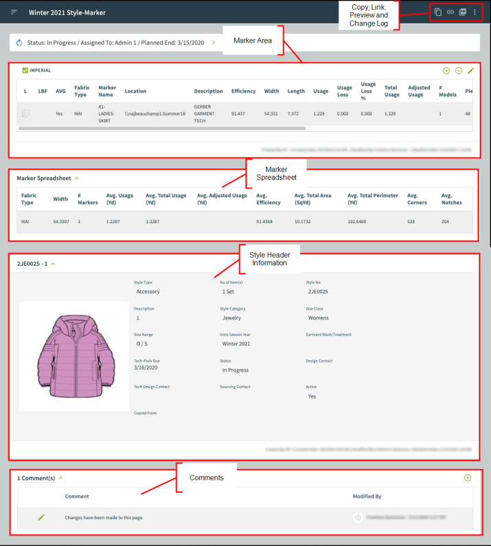 - Change Log: Lists all additions and modifications made within the Styles Marker page.