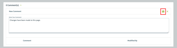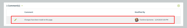 Now the newly added comment will appear in the Comment(s) section. Click the pencil icon to edit the existing comments or click the + Add New button to enter additional comments, if needed.