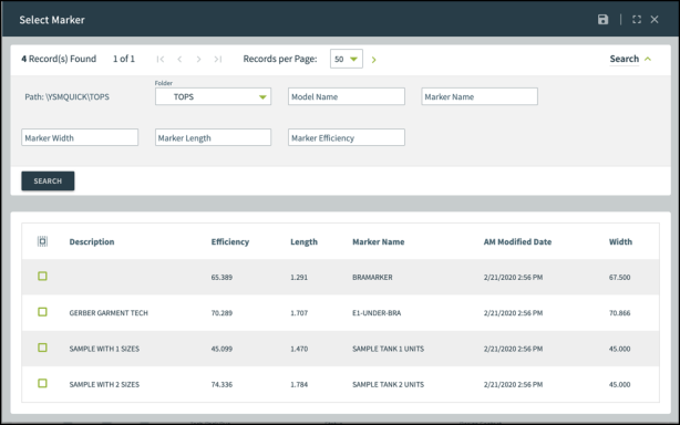 Use the Folder drop-down to navigate through AccuMark’s storage area hierarchy. This is where the desired AccuMark marker is saved. Note: An AccuMark PLM integration setup is required to add a Style Marker. Refer to the YuniquePLM AccuMark Integration user guide for further details.