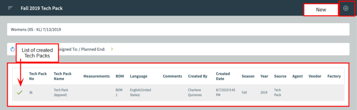 Change Log: Lists all additions and modifications made per user within the Styles Tech Pack page. This option is available within the View area.