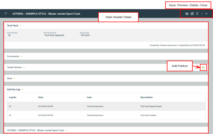 Add Partner: Share the Tech Pack with a designated trade partner. For more information, review the Adding a Partner section below.