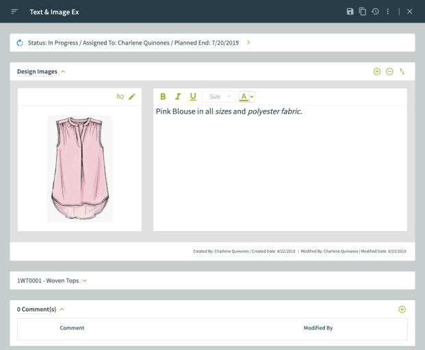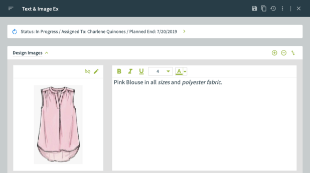 The Style Folder Text - Image workflow page offers users three workflow types to enter necessary text and image data together or independently. The text & image, text only or image only workflows can be used to communicate artwork, packaging designs, packaging placements, etc.